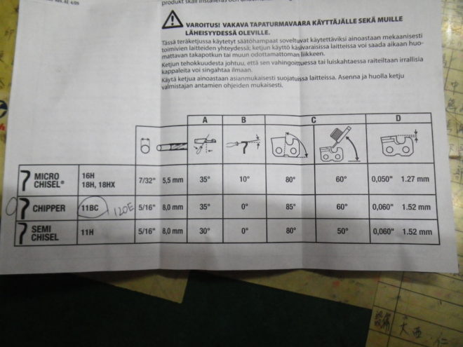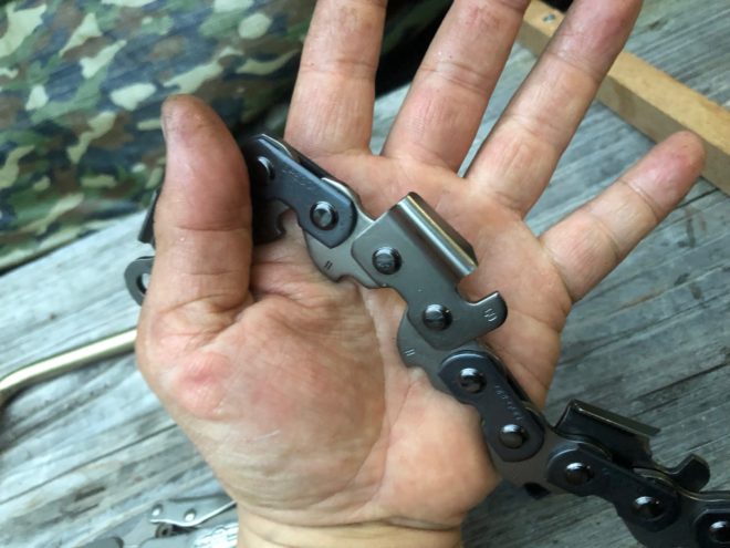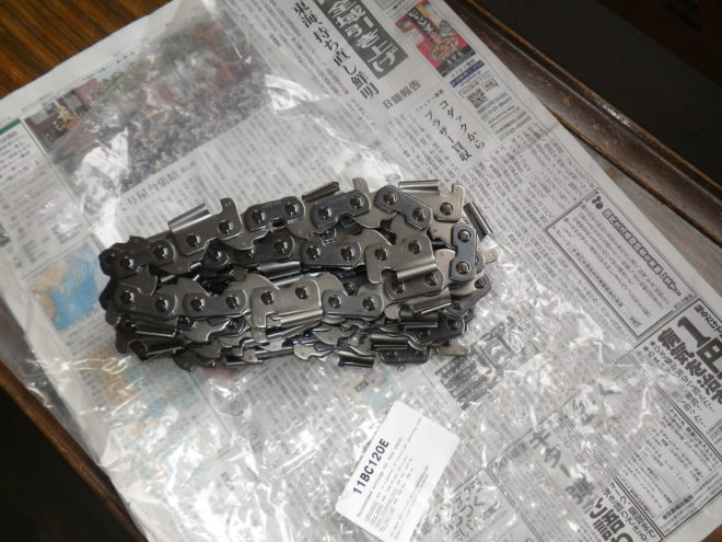 一番上は現場での作業で使われるハーベスタ用ソーチェンです。