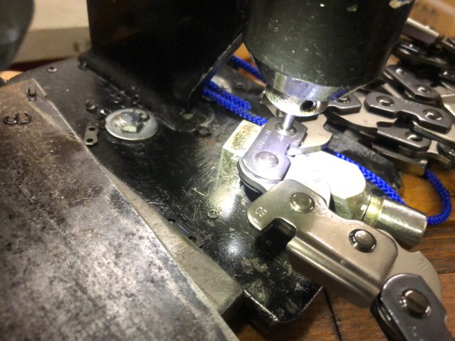 以前はカットチェーンで仕入れていましたが、今はリールチェーンしかないそうで、今回はリールチェーンから希望のリンク数を切り出します。