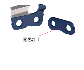 オレゴンソーチェーンの金属表面をみていただくと、青くないでしょうか?これは、熱処理工程で金属表面を青く加工することで、錆の発生を抑止することを目的としています。ユーザにとって「こうあってほしい」を反映させる、これがオレゴンのハイグレード品質なチェーン部品です。